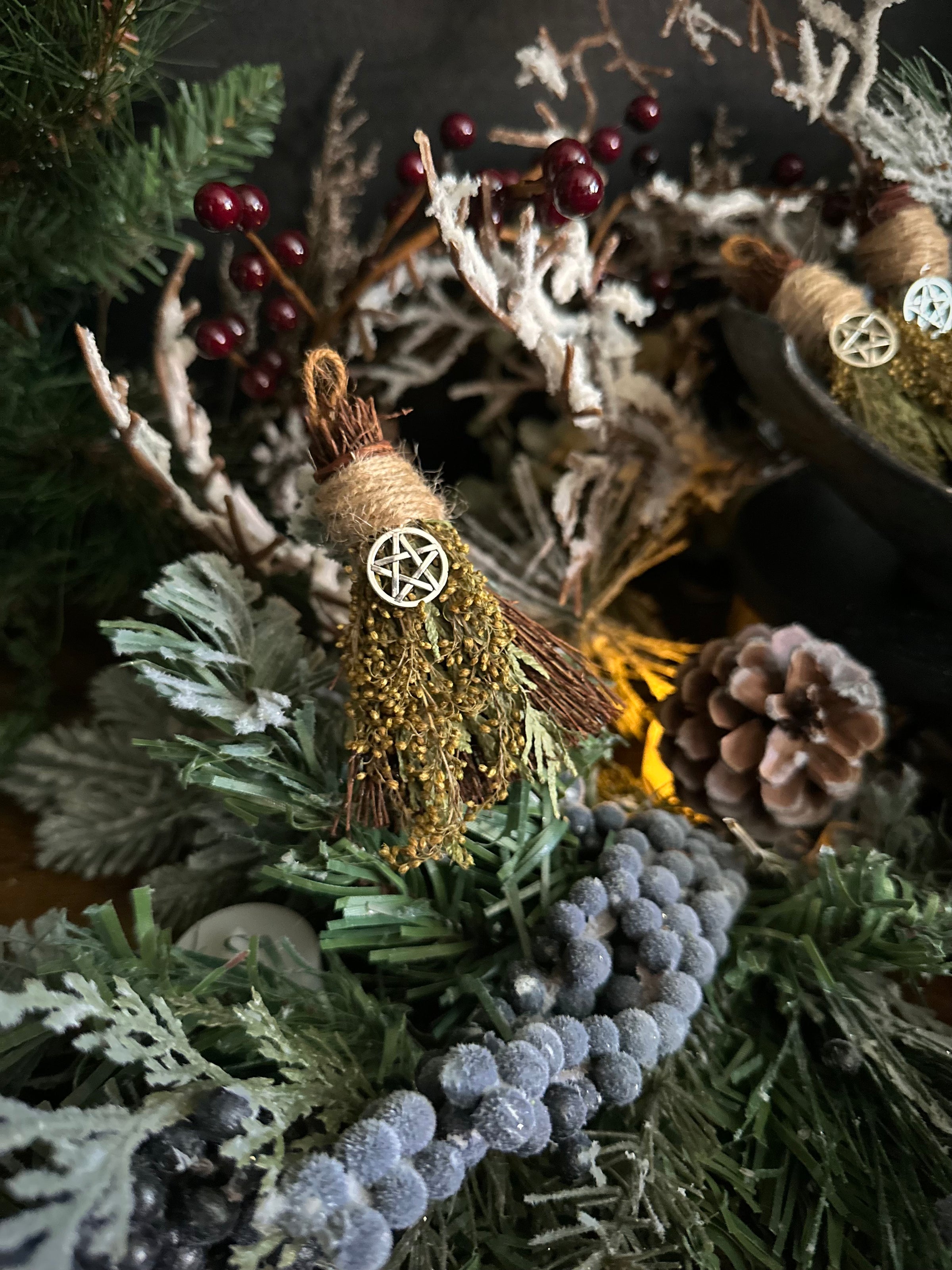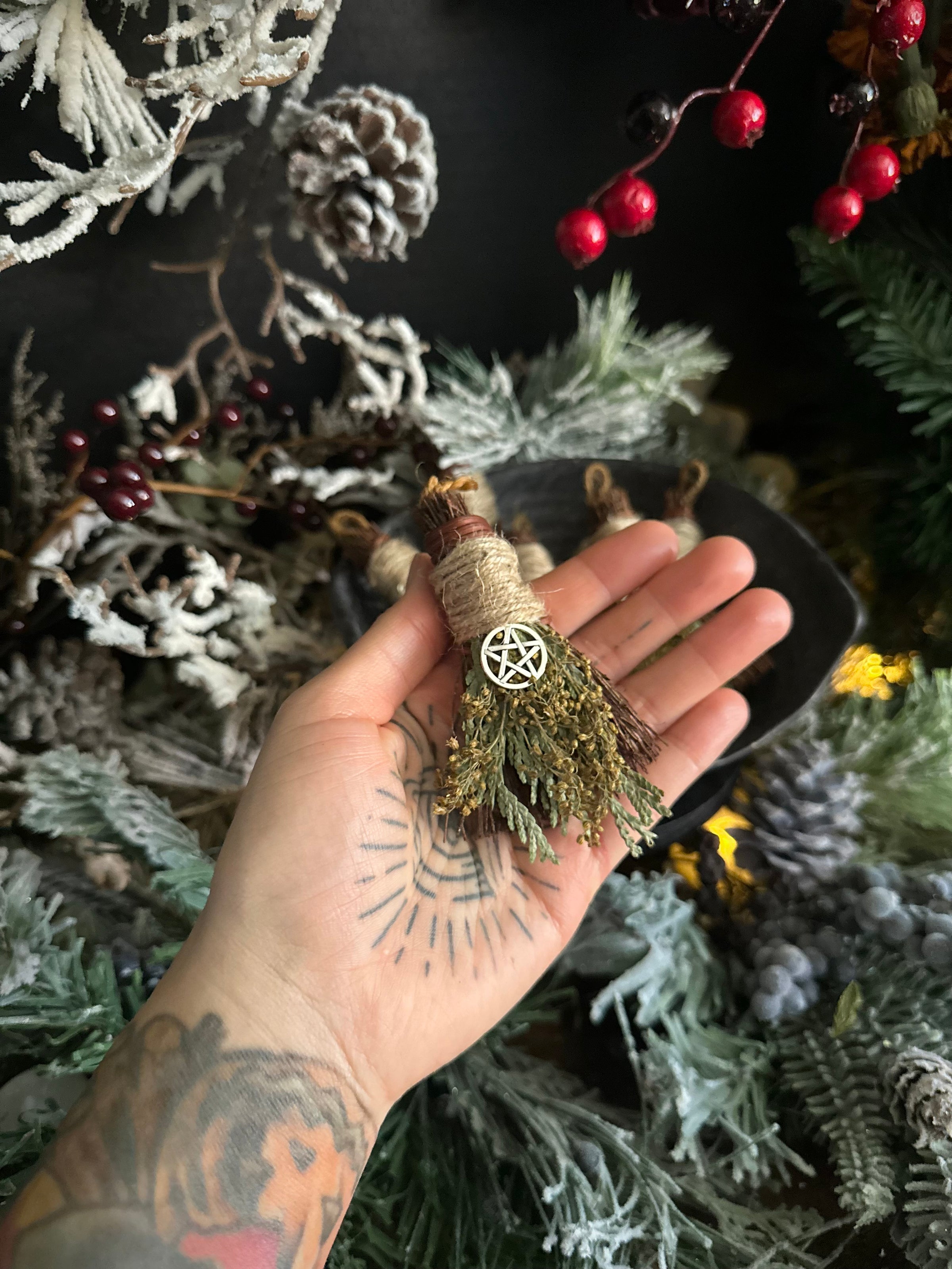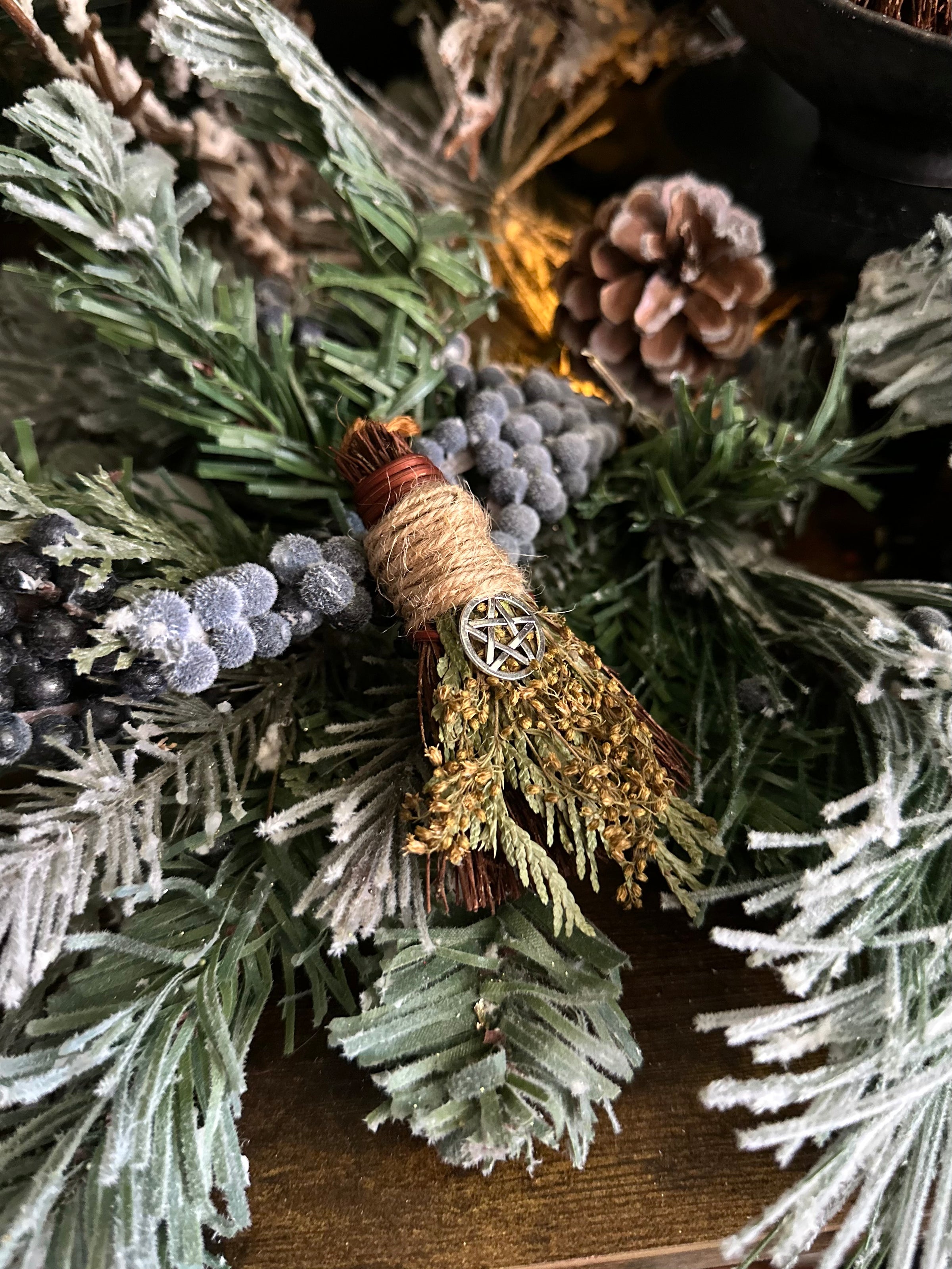 ComaVVitch Mini-Besom Brooms are skillfully decorated with herbs, flowers, and protective charms to serve as a beautiful addition to ones altar and/or living space...and now in a smaller size!
